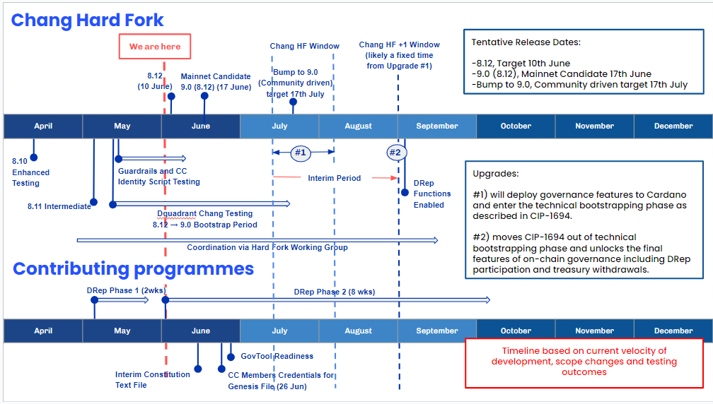 以下の日付は、現在の開発速度、スコープの変更、テスト結果に基づいて、Cardanoのコア開発チームによって提供されました。これには、社会やコミュニティの準備は含まれません。