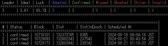 ブロック生成結果確認だけでなく、ブロック伝播や次の生成スケジュールも確認できる便利なツールとなります。