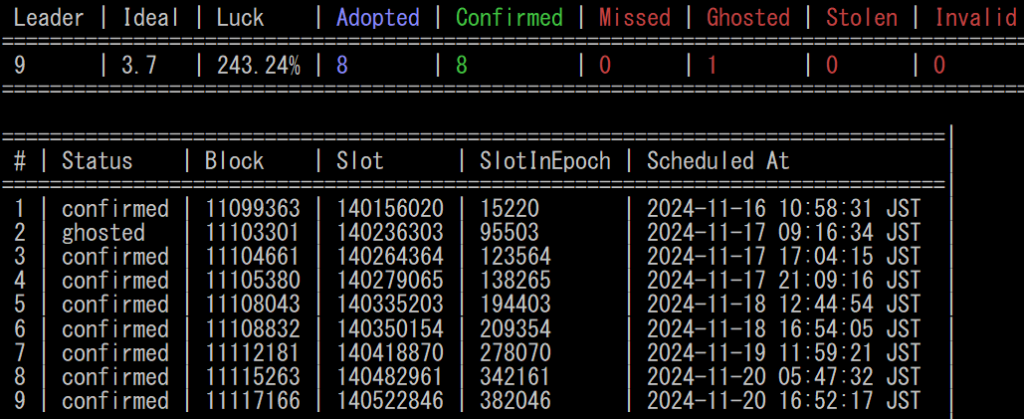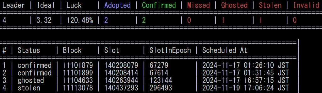 1エポック = 432000slotのうちブロック生成可能スロットは5%(21600slot)になっておりますが、割り当てられるスケジュールはプール間同士では調整されない仕様になっているため、複数のプールに同一スロットにスケジュールが割り当てられることがあります。