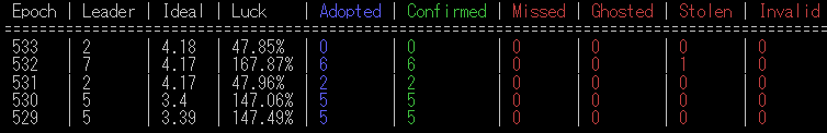 1エポック = 432000slotのうちブロック生成可能スロットは5%(21600slot)になっておりますが、割り当てられるスケジュールはプール間同士では調整されない仕様になっているため、複数のプールに同一スロットにスケジュールが割り当てられることがあります。