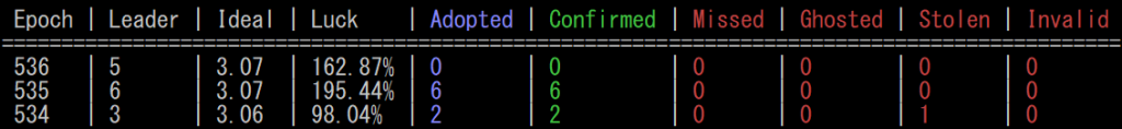 1エポック = 432000slotのうちブロック生成可能スロットは5%(21600slot)になっておりますが、割り当てられるスケジュールはプール間同士では調整されない仕様になっているため、複数のプールに同一スロットにスケジュールが割り当てられることがあります。