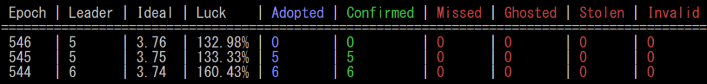 当プールでは、各サーバーを厳格に管理し、[Missed]ゼロの運営を継続中。ブロック割り当ての変動はありますが、期待値の高いエポックでは確実に報酬をお届けできるよう努めております。