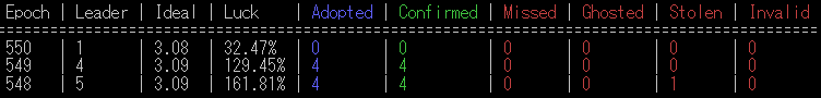 当プールでは、各サーバーを厳格に管理し、[Missed]ゼロの運営を継続中。ブロック割り当ての変動はありますが、期待値の高いエポックでは確実に報酬をお届けできるよう努めております。