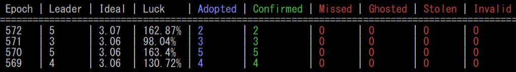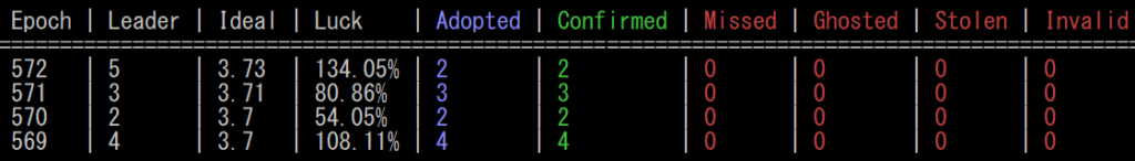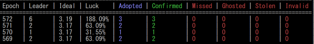 🧵 1. Epoch 572 スタート & 各プールのLuck値報告