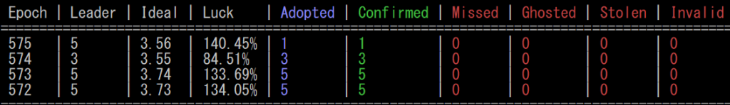 8月3日よりEpoch574がスタート。今期もInfiniaの3プールは順調に稼働しており、ステーキング報酬の期待値(Luck)は以下の通りとなりました。