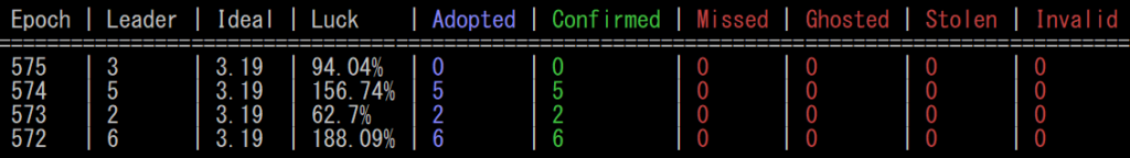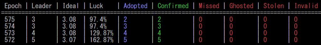 当プールでは、各サーバーを厳格に管理し、[Missed]ゼロの運営を継続中。ブロック割り当ての変動はありますが、期待値の高いエポックでは確実に報酬をお届けできるよう努めております。