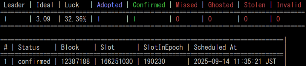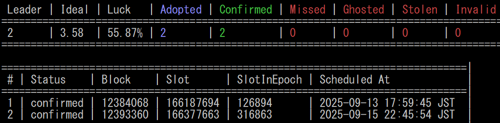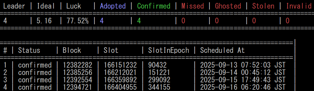 What it means: Luckはあくまで統計的期待値で確定値ではありませんが、ノード健全性とネットワーク状態のモニタリングを徹底し、安定ブロック生成を最優先で継続しています。