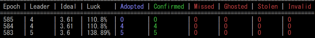 当プールでは、各サーバーを厳格に管理し、[Missed]ゼロの運営を継続中。ブロック割り当ての変動はありますが、期待値の高いエポックでは確実に報酬をお届けできるよう努めております。
