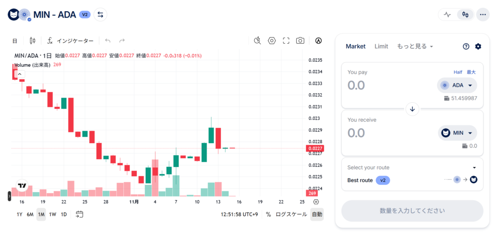- From/To でトークン選択(例:ADA → MIN)。